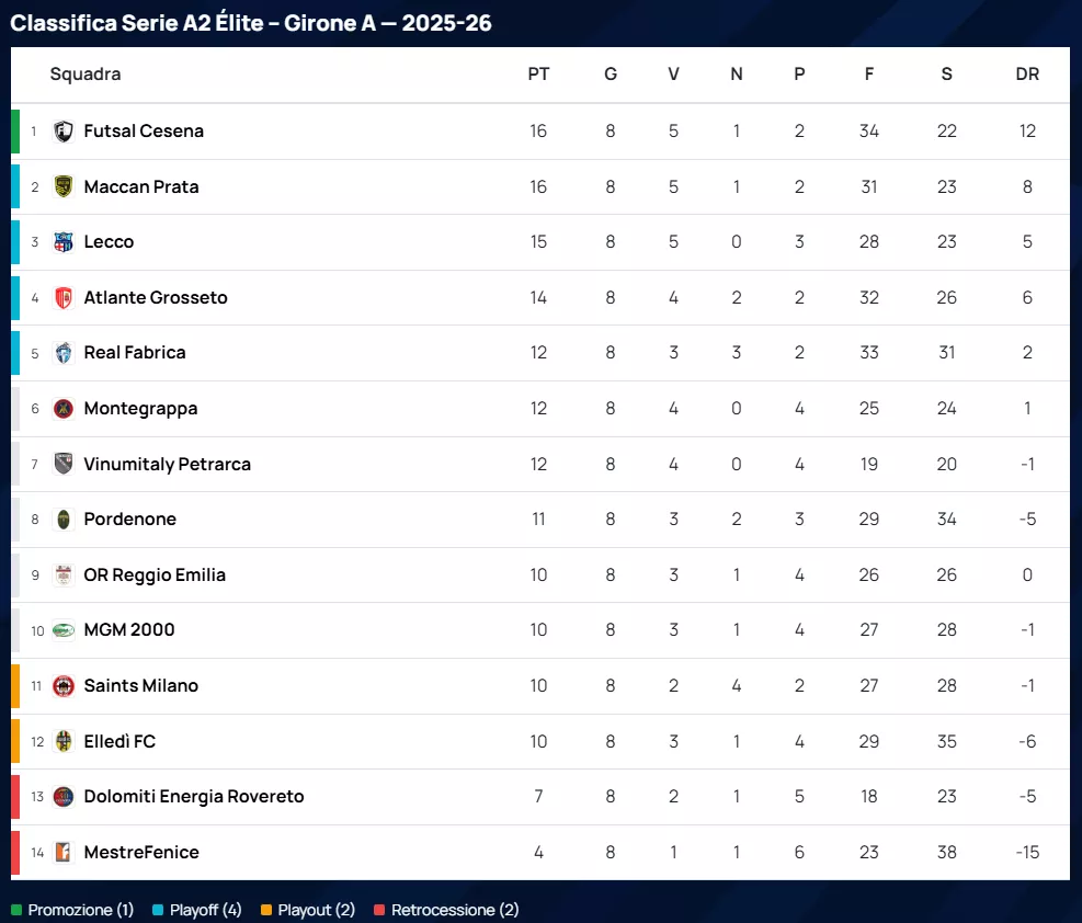CLASSIFICA di SERIE A2 Élite Gir. A