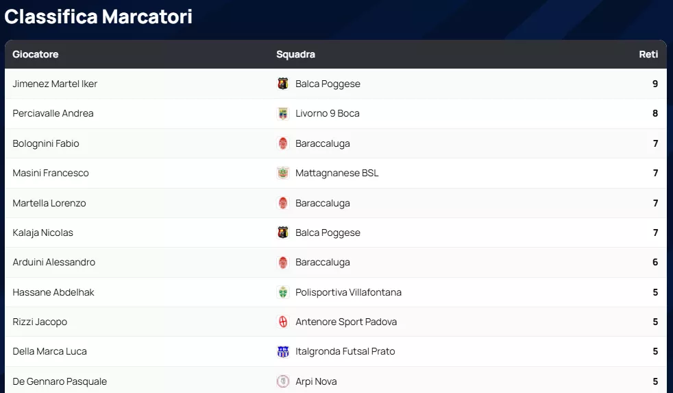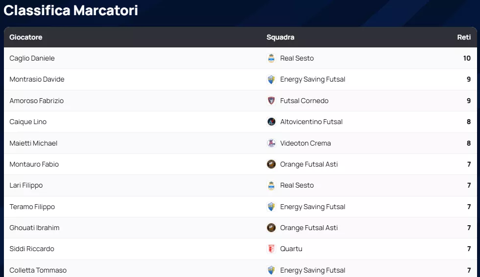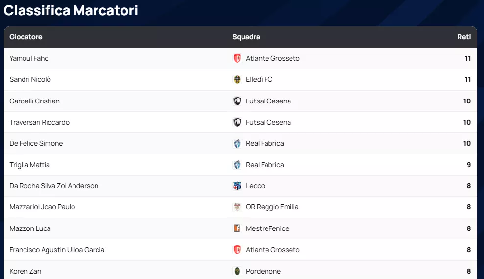 Classifica Marcatori SERIE A2 Élite Gir. A