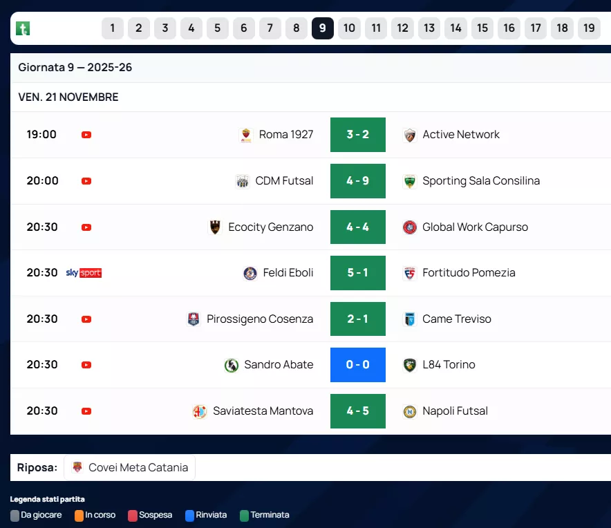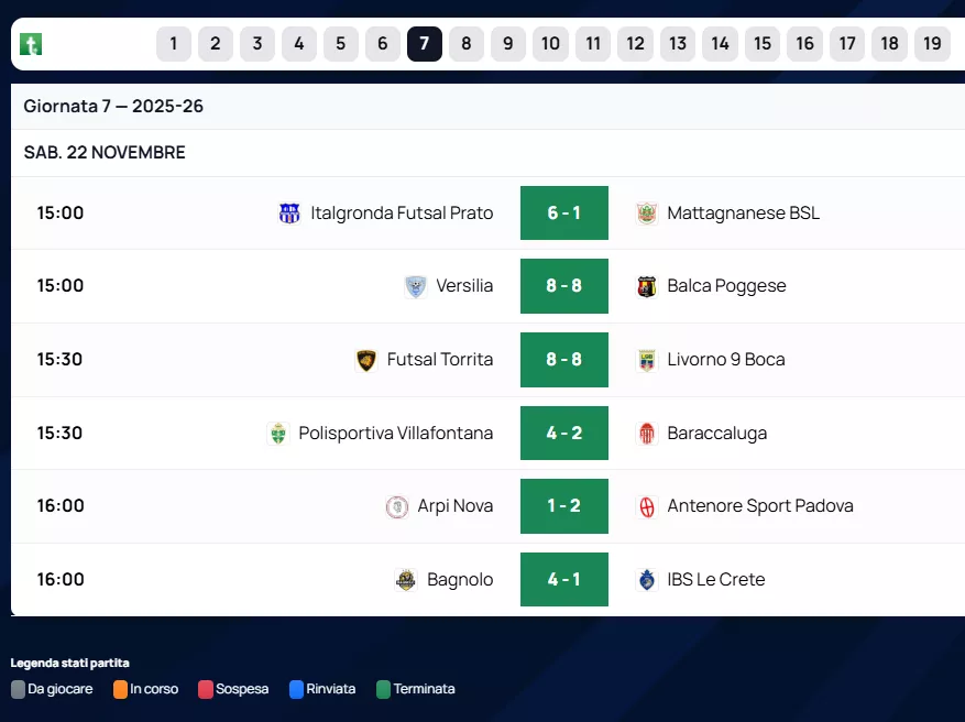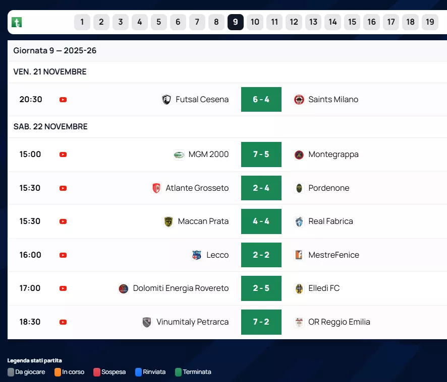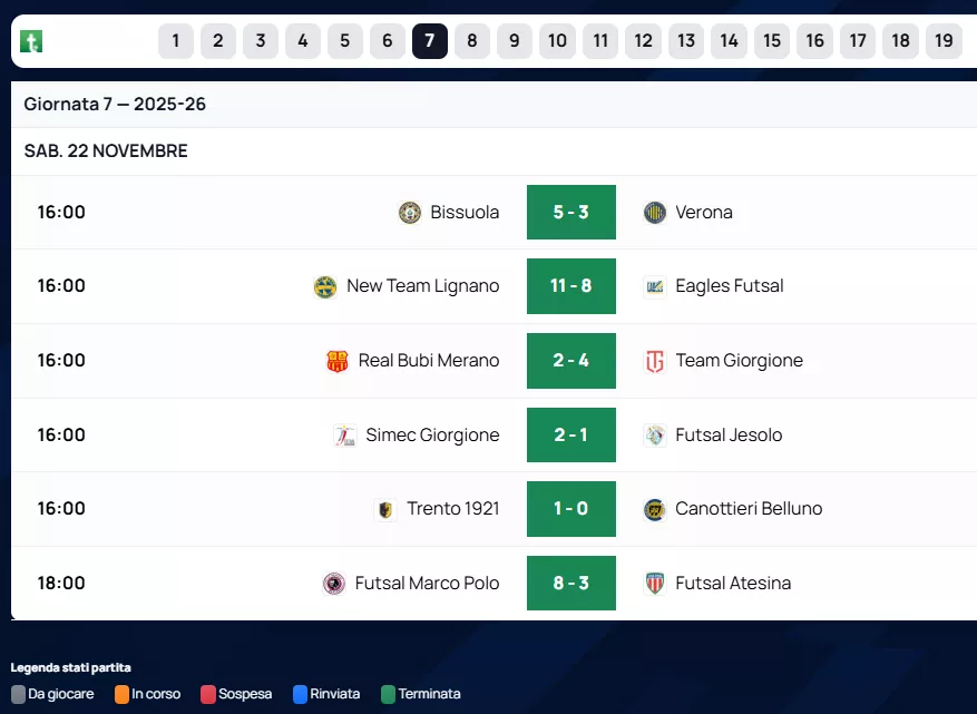 Di seguito RISULTATI & CLASSIFICHE & MARCATORI & ARBITRI al Triplice Fischio Finale delle squadre Venete di Futsal, nel Nazionale. Con le Designazioni Arbitrali dell'A.I.A.