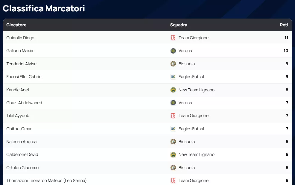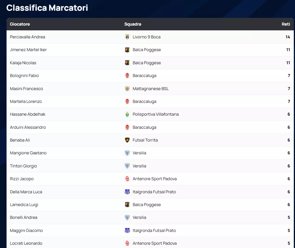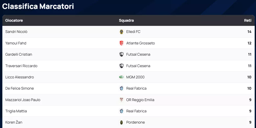 Classifica Marcatori SERIE A2 Élite Gir. A