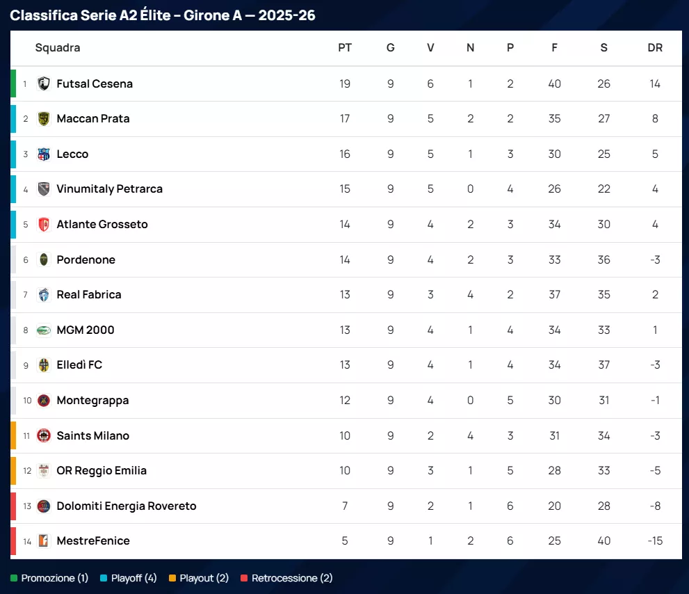 CLASSIFICA di SERIE A2 Élite Gir. A