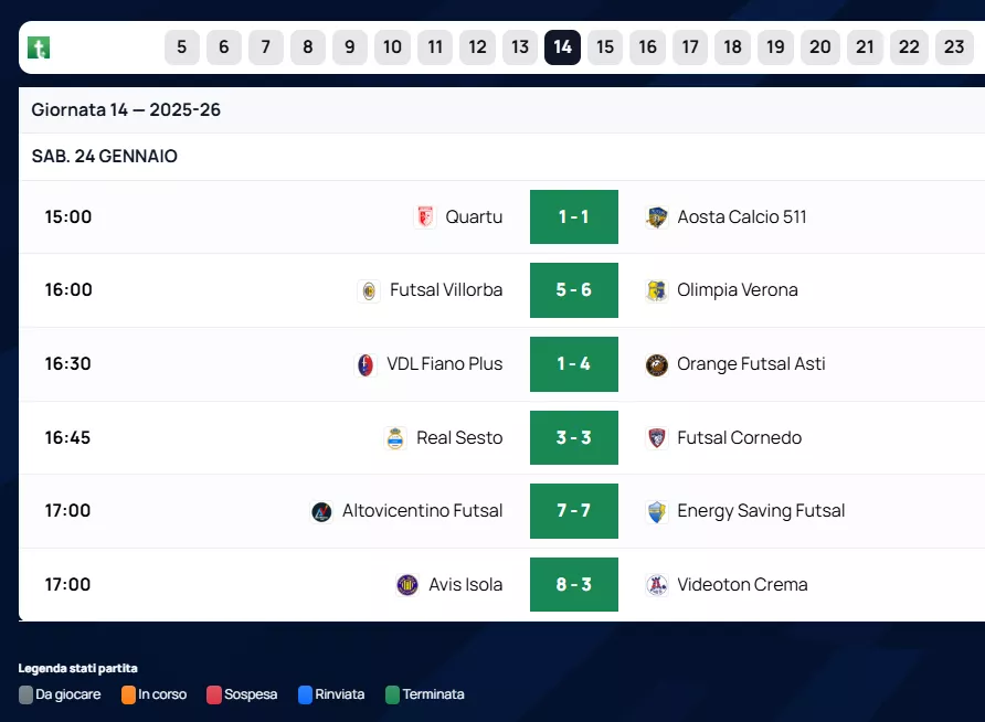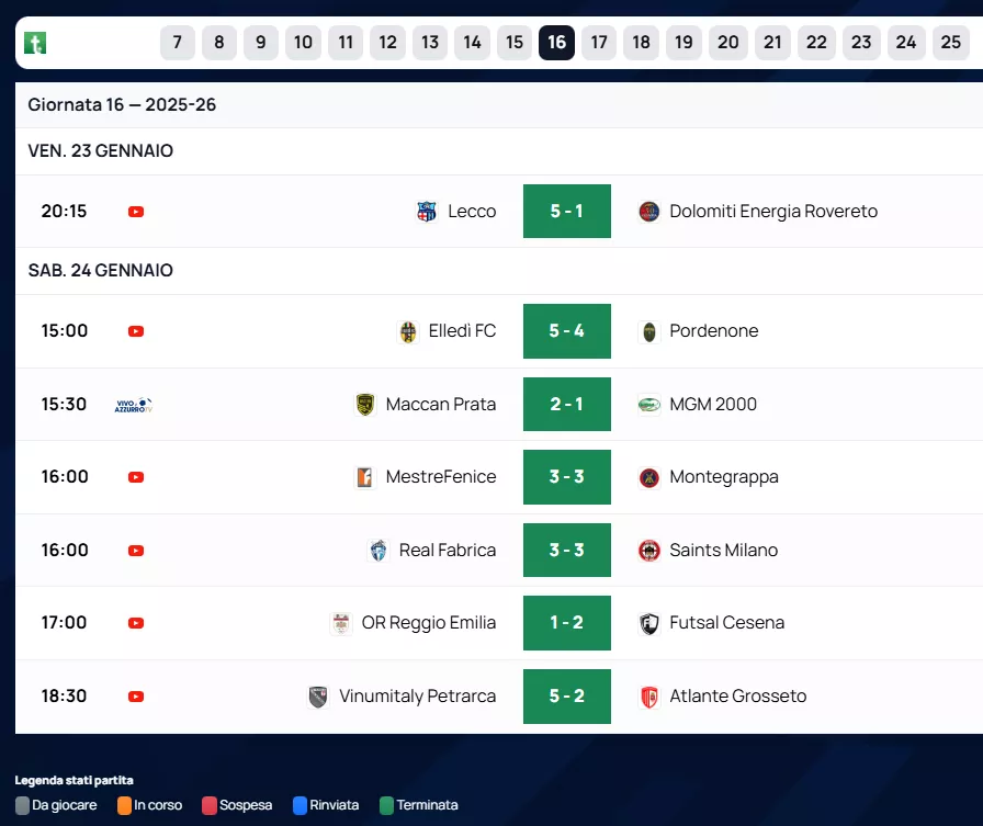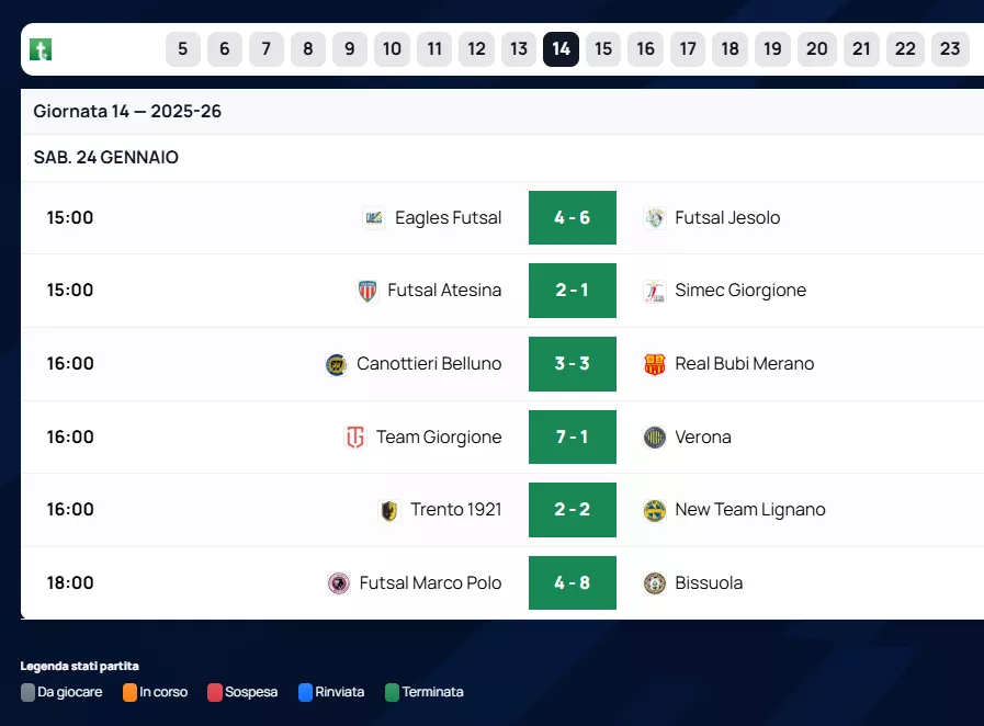 Di seguito RISULTATI & CLASSIFICHE & MARCATORI & ARBITRI al Triplice Fischio Finale delle squadre Venete di Futsal, nel Nazionale. Con le Designazioni Arbitrali dell'A.I.A.