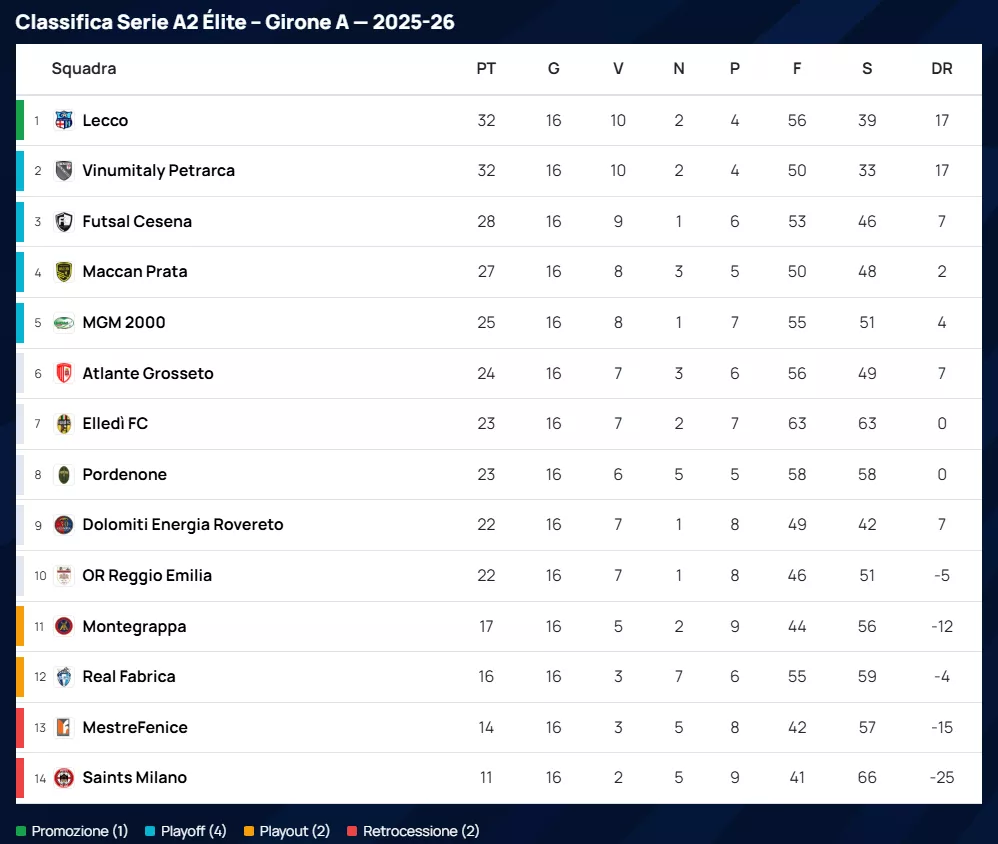 CLASSIFICA di SERIE A2 Élite Gir. A