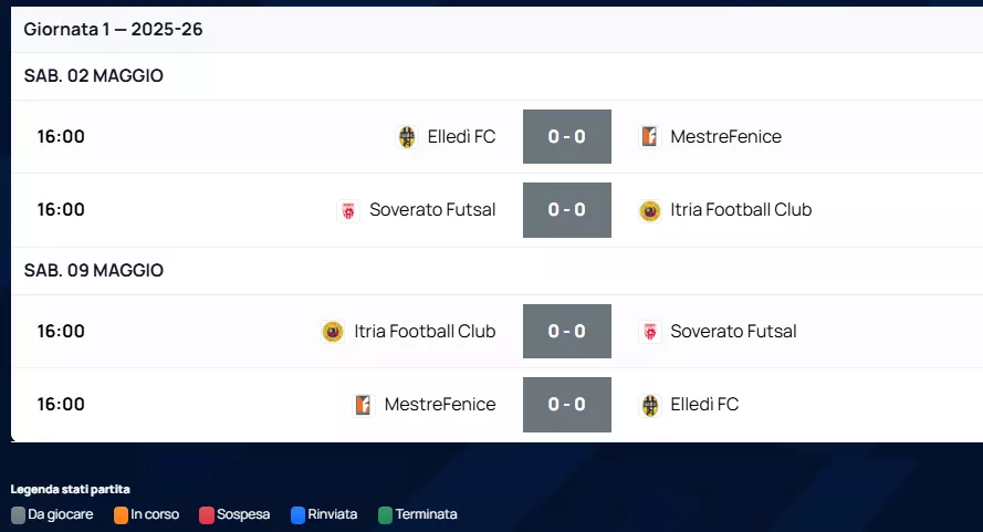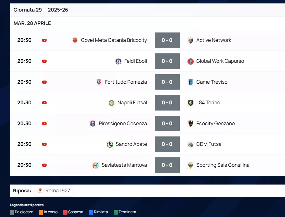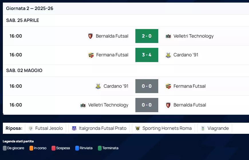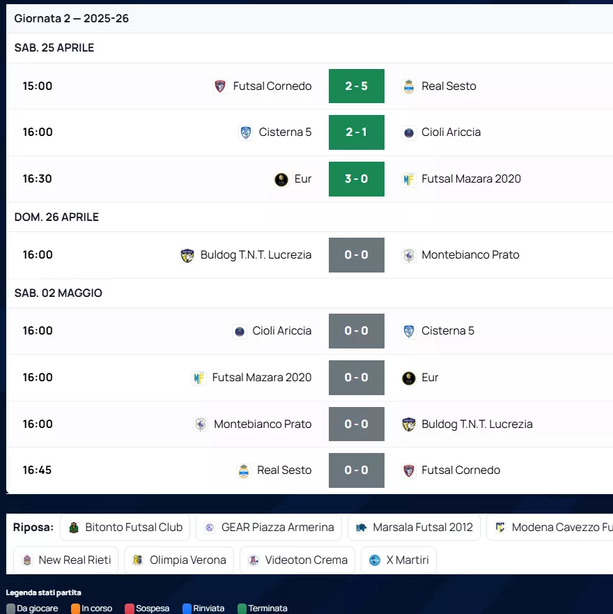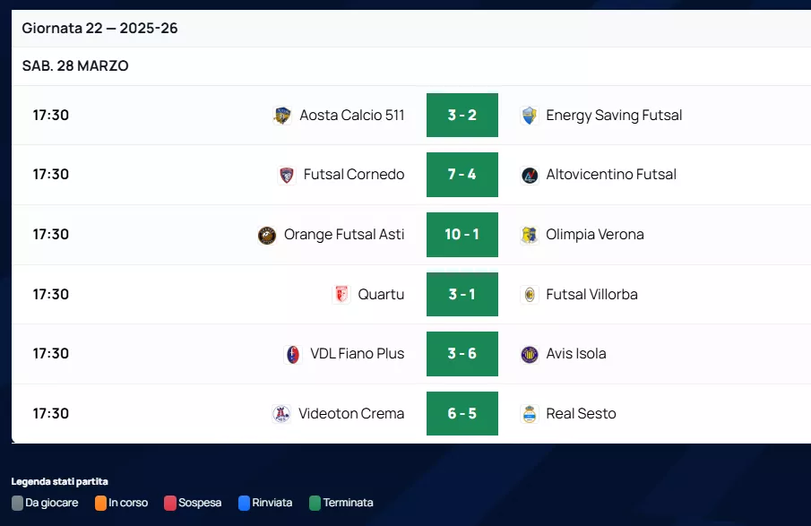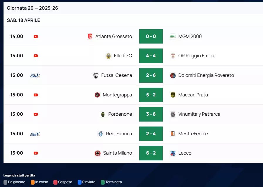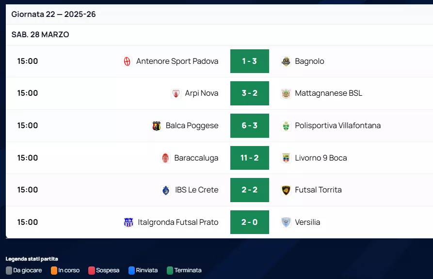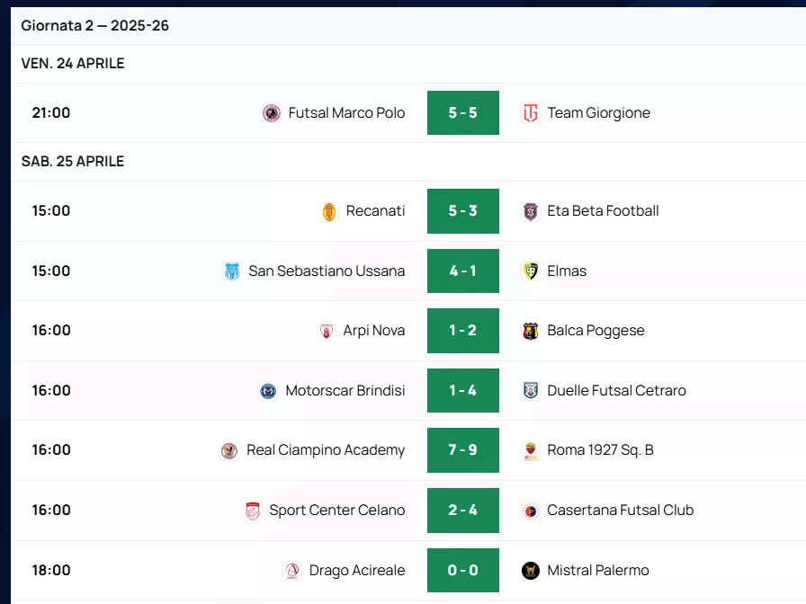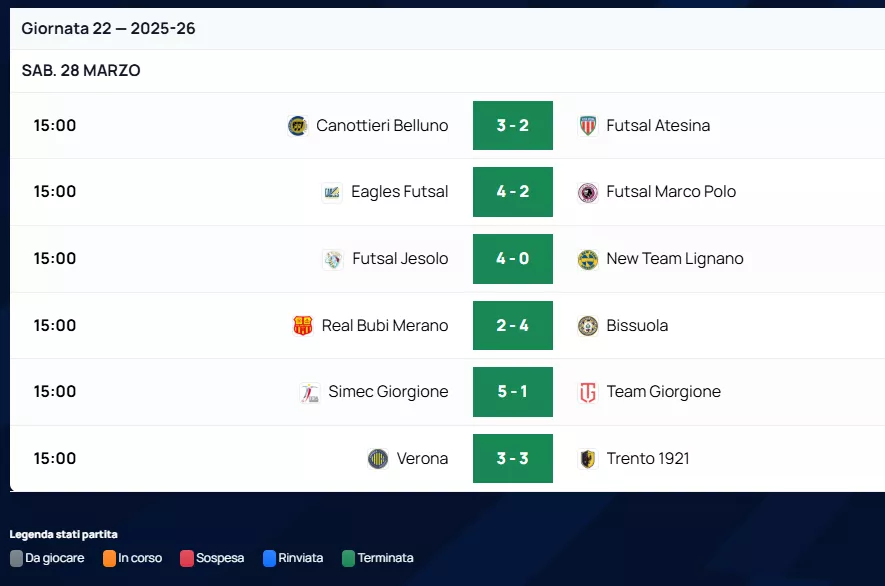 Di seguito RISULTATI & CLASSIFICHE & MARCATORI & ARBITRI al Triplice Fischio Finale delle squadre Venete di Futsal, nel Nazionale. Con le Designazioni Arbitrali dell'A.I.A.