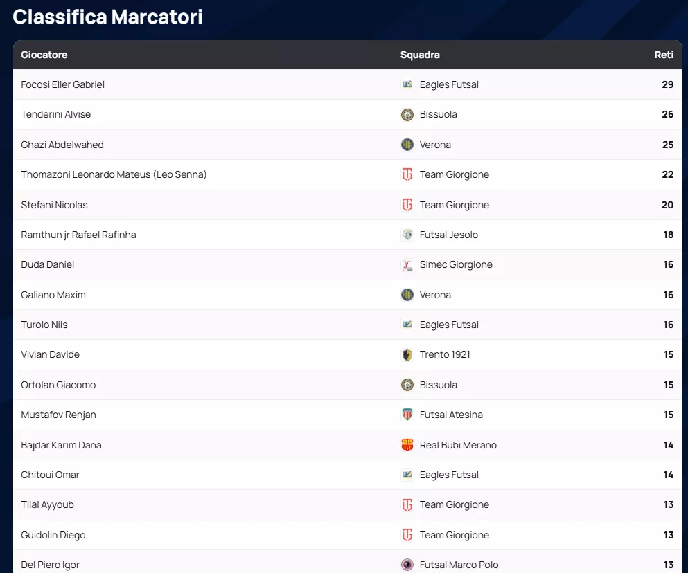 Dalle prime corse dei Primi Calci fino alle sfide infuocate delle Nazionali, siamo il punto di riferimento per il Futsal Veneto e oltre. Per noi non esistono "piccole" categorie: ogni atleta, ogni gol e ogni parata meritano visibilità, statistiche precise e un racconto professionale.