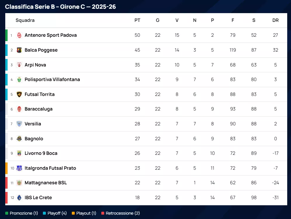 Serie B Girone C: celebra la sua regina indiscussa con 80 minuti d'anticipo: l'ANTENORE SPORT PADOVA ha compiuto l'impresa. I ragazzi di Mister Andrea Rozzato e Capitan Federico Crepaldi, orgoglio veneto e unica rappresentante della regione in questo raggruppamento, hanno staccato il pass per la Serie A2 2026/27 con ben due giornate di anticipo, rendendo l'ultimo atto della stagione una passerella trionfale.