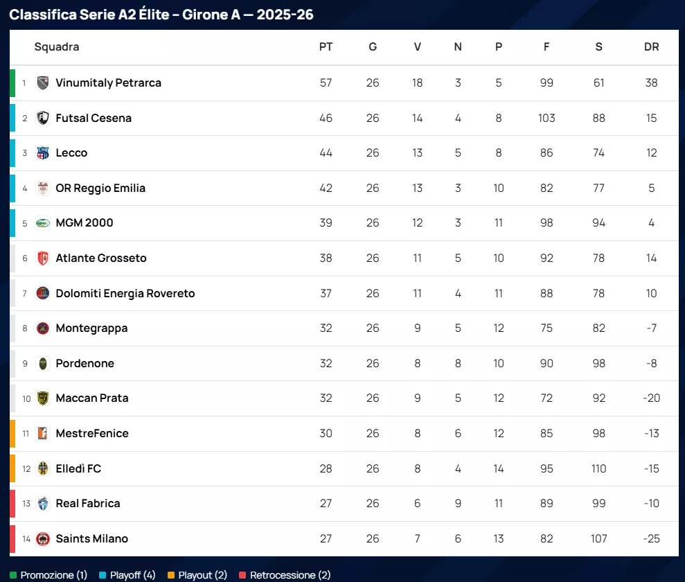 CLASSIFICA di SERIE A2 Élite Gir. A