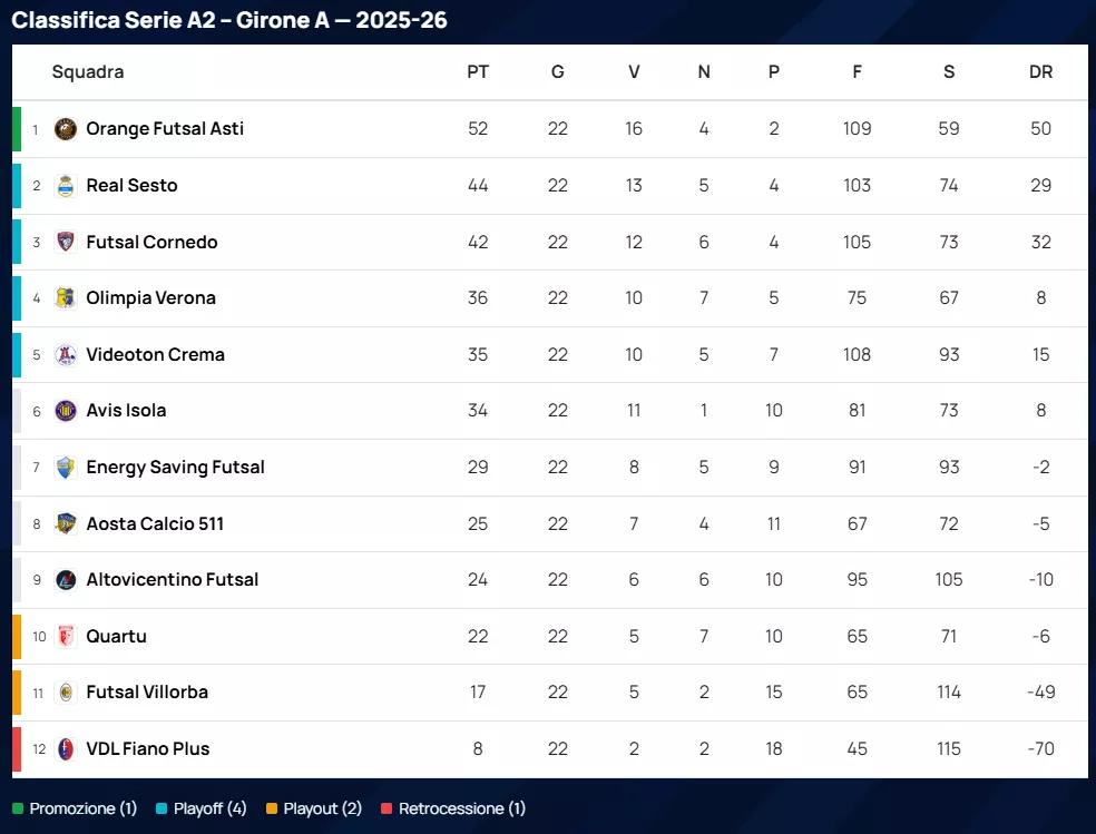 Serie A2 Girone A: emette il suo verdetto più importante con novanta minuti di anticipo: l'ORANGE FUTSAL ASTI è ufficialmente promosso in SERIE A2 Élite.
