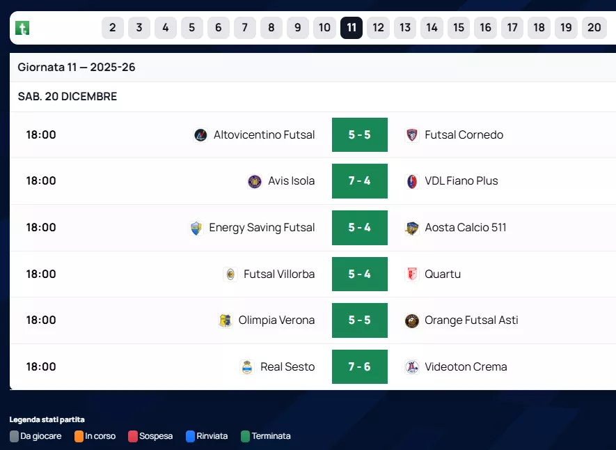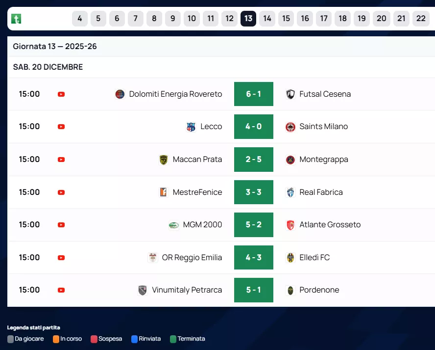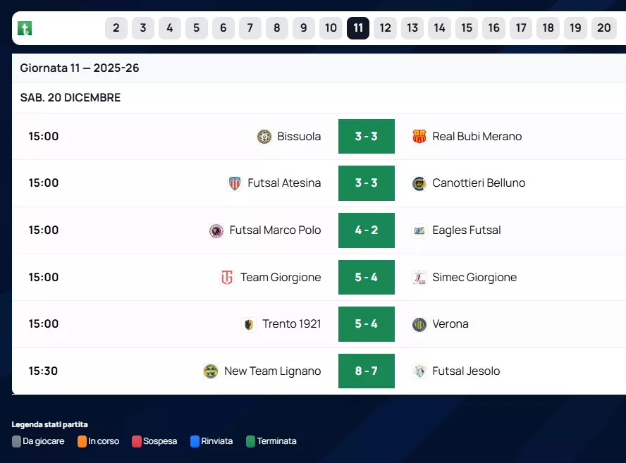 Di seguito RISULTATI & CLASSIFICHE & MARCATORI & ARBITRI al Triplice Fischio Finale delle squadre Venete di Futsal, nel Nazionale. Con le Designazioni Arbitrali dell'A.I.A.