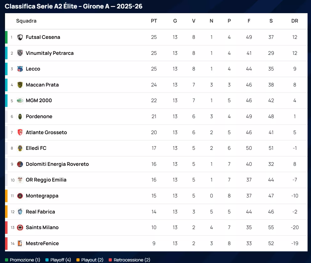 CLASSIFICA di SERIE A2 Élite Gir. A