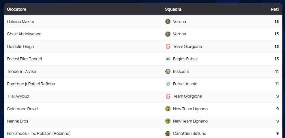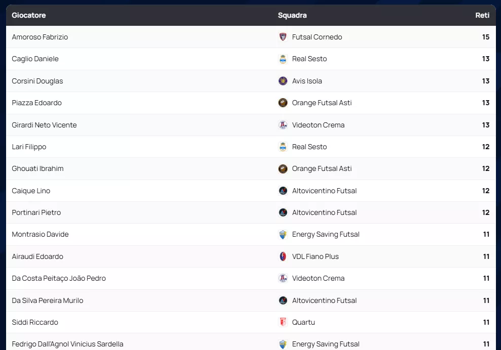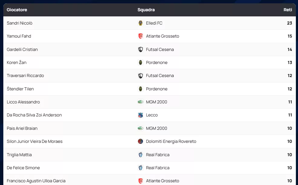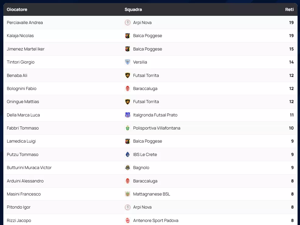 Classifica Marcatori SERIE A2 Élite Gir. A