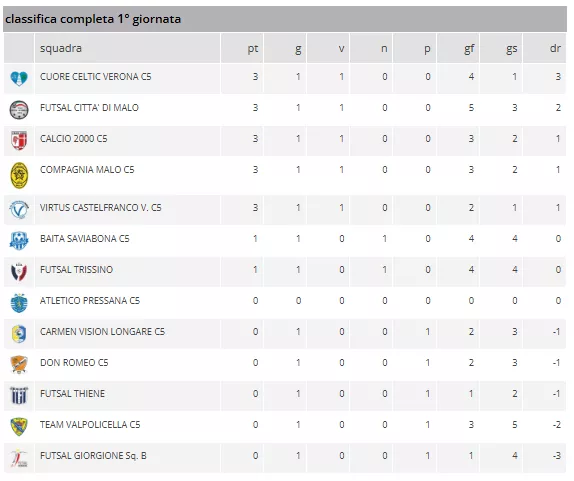 La vittoria con il margine più ampio è stata quella del CUORE CELTIC VERONA C5 di Diego Citraro, che al Centro Sportivo Consolini di Verona ha battuto 4 a 1 i giovani del FUTSAL GIORGIONE Sq. B di Robson Angelo Marani. Le reti sono state firmate da Mattia Danese (doppietta) ed Edoardo Campani (doppietta); per gli ospiti castellani la rete è stata di Daniel Caruso.