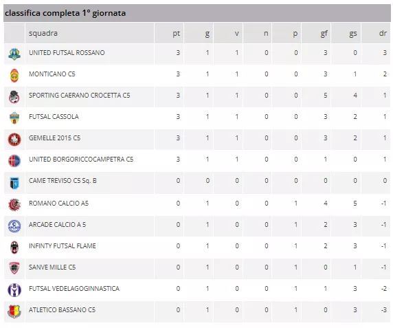 Venerdì 19 settembre si è disputata la Prima Giornata del Girone A del Campionato Regionale di Serie C2 2025/2026, che si è conclusa con un solo pareggio e cinque vittorie casalinghe. Non sono mancati i colpi di scena rispetto ai pronostici della vigilia, ma procediamo con ordine.