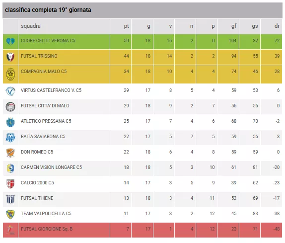 VIRTUS CASTELFRANCO V. C5 - CUORE CELTIC VERONA C5 = Venerdì 20/02/2026 21:30 (And.: 1 a 6)