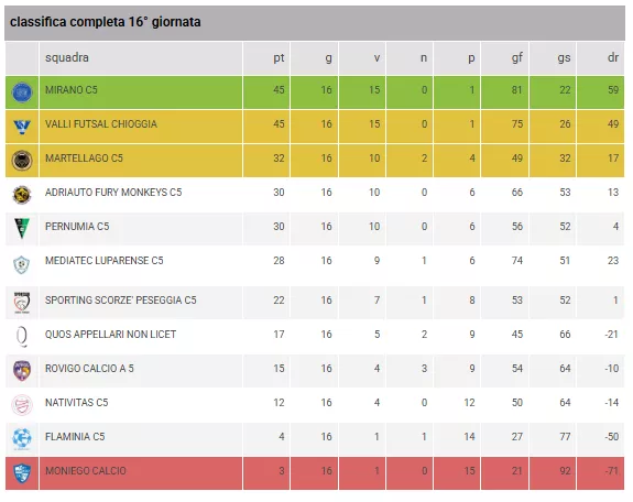 MONIEGO CALCIO - VALLI FUTSAL CHIOGGIA = 1 a 9 (And.: 1 a 6)