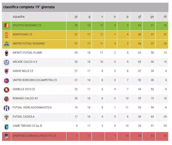 ATLETICO BASSANO C5 - SPORTING CAERANO CROCETTA C5 = Venerdì 20/02/2026 21:30 (And.: 6 a 1)