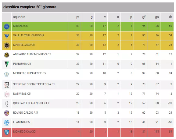 MIRANO C5 - MARTELLAGO C5 = Venerdì 27/03/2026 21:30 (And. 3 a 0)