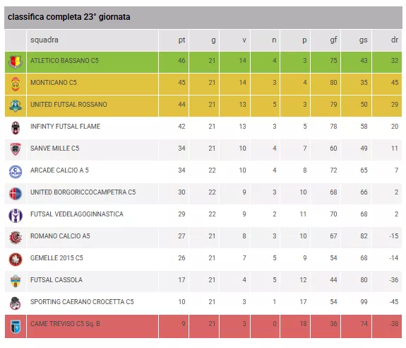 CAME TREVISO C5 Sq. B - UNITED FUTSAL ROSSANO = 5 a 6 (1 a 4) (And.: 2 a 6)