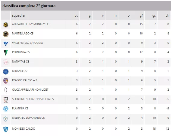 Big match al Palanativitas tra Nativitas e Adriauto Fury Monkeys: la formazione di casa vuole trasformare come tradizione il proprio palazzetto in un fortino, in una sfida che torna dopo tre anni quando entrambe le squadre vennero promosse dalla D. Nativitas con una vittoria e una sconfitta (a Mirano all'ultima giornata), Adriauto che sta volando con 15 goal realizzati in due gare, squadra spumeggiante con punte di diamante in grande spolvero nelle prime giornate.