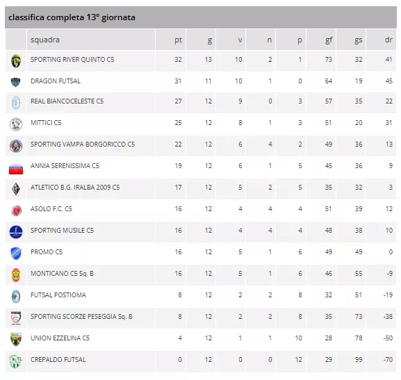 DRAGON FUTSAL - ASOLO F.C. C5 = Sabato 13/12/2025 20:30