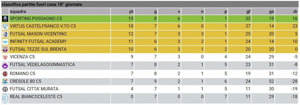 VIRTUS CASTELFRANCO V.TO C5 - SPORTING POSSAGNO C5