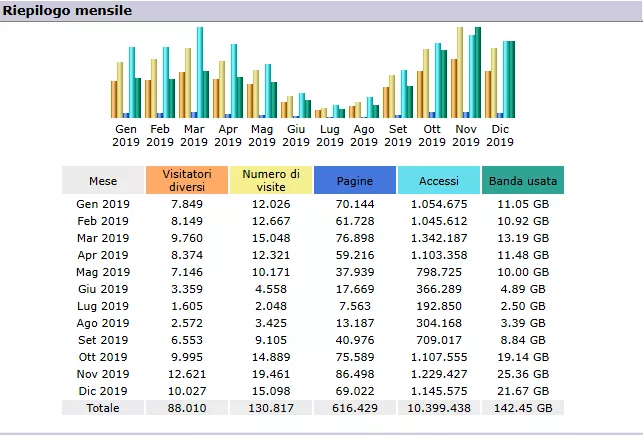 Nel 2019: 130.817 visite (con una media mensile di 10.901 visite).
