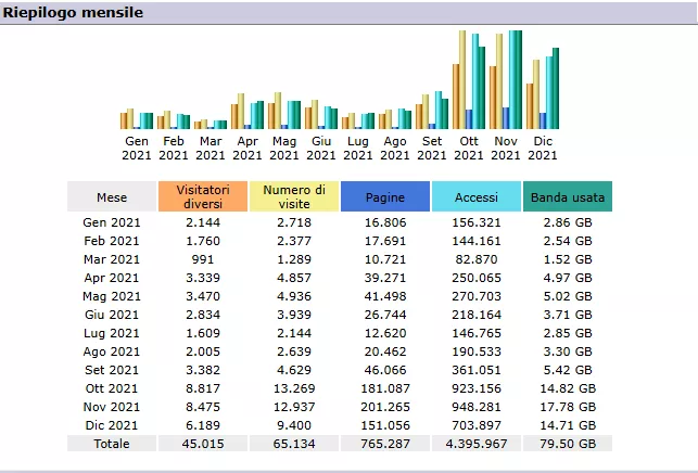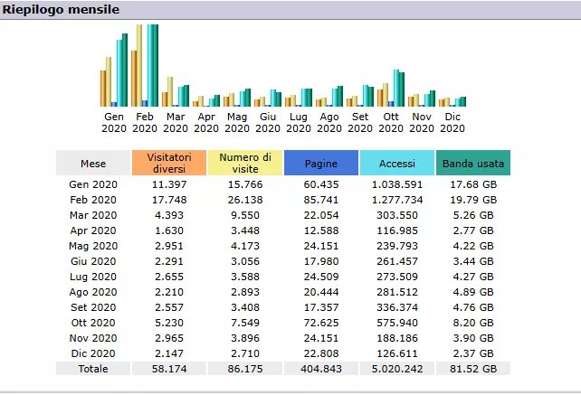Nel 2020: 86.175 visite (con una media mensile di 7.181 visite).