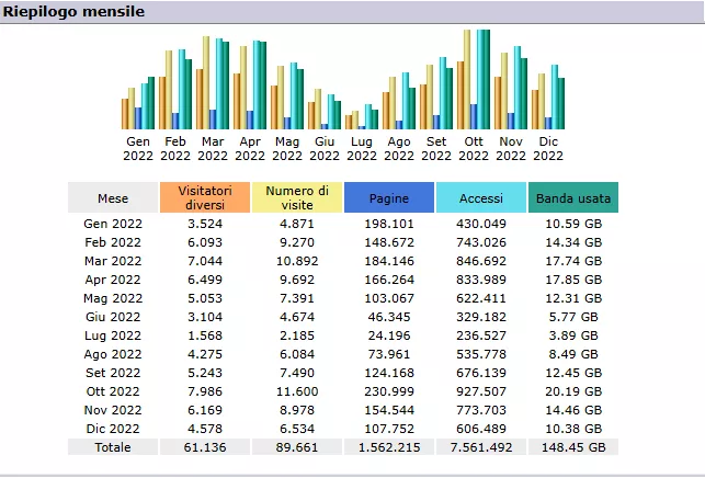 Nel 2022 abbiamo avuto un totale di 89.661 visite (con una media mensile di 7.471 visite).