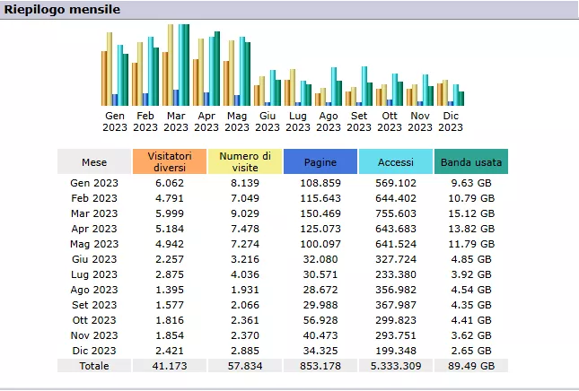 Nel 2023: 89.834 visite c5time.it + c5time.com (con una media mensile di 7.846 visite).