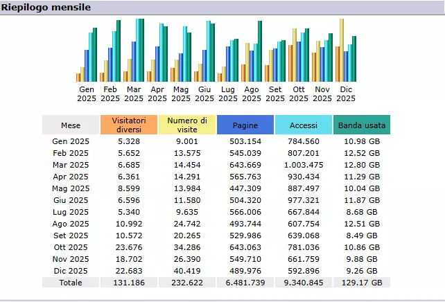 Nel 2025: 232.622 visite c5time.it (con una media mensile di 19.382 visite).