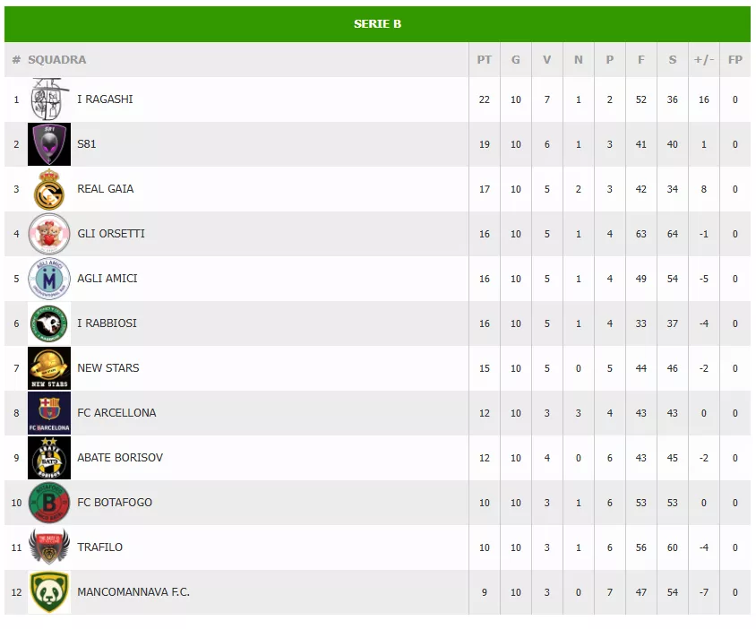 CLASSIFICA Serie B SUPERLEGA AICS VERTIGO