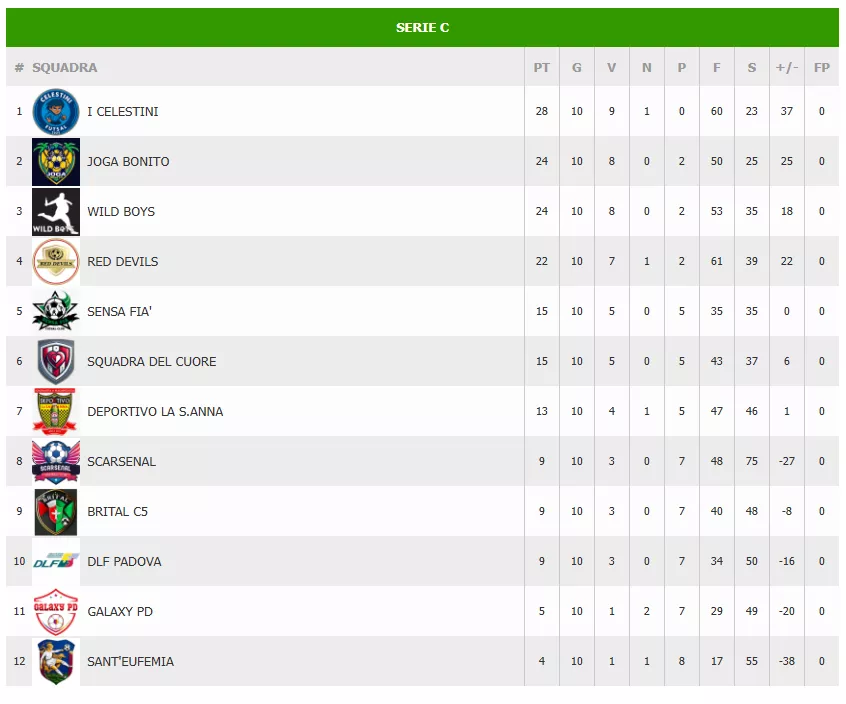 CLASSIFICA Serie C SUPERLEGA AICS VERTIGO