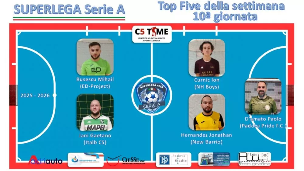 La decima giornata della SERIE A - SUPERLEGA AICS VERTIGO ha regalato emozioni purissime, confermando l'assoluta imprevedibilità di questo campionato di Calcio a 5, dove l'esperienza e la sagacia tattica dei veterani si sono rivelate armi micidiali. Il palcoscenico è stato illuminato dal Vertigo Sport Center di Padova e dal Palazzetto Olof Palme di Cadoneghe, teatro di sfide al cardiopalma tra il 9 e l'11 dicembre 2025.