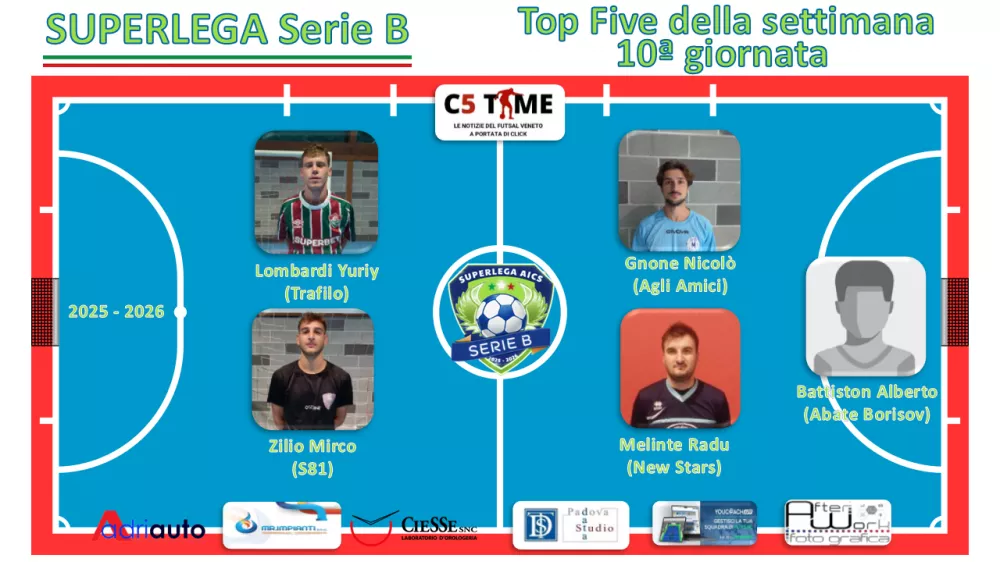 L'incontro più pirotecnico della giornata, tenutosi mercoledì 10 dicembre al Vertigo Sport Center, è stato il vibrante pareggio tra ITALB C5 (19 punti) e VALORI IMMOBILIARI (16 punti), terminato 5 a 5, entrambe al loro primo segno X della stagione. L'ITALB C5 ha potuto contare sulla vena realizzativa del Top Five della settimana Jani Gaetano, autore di una strepitosa tripletta, affiancato da De Podolinsky Rilke e Pelivani Roland. Dall'altra parte, le VALORI IMMOBILIARI hanno risposto colpo su colpo con la doppietta di Moreschi Federico e le reti del bomber Bettella Riccardo, Stefani Andrea e Tramarin Gianluca. Un punto d'oro per entrambe, che mantengono la terza e la quinta posizione, ma con la sensazione che la corsa per il podio sia più aperta che mai.