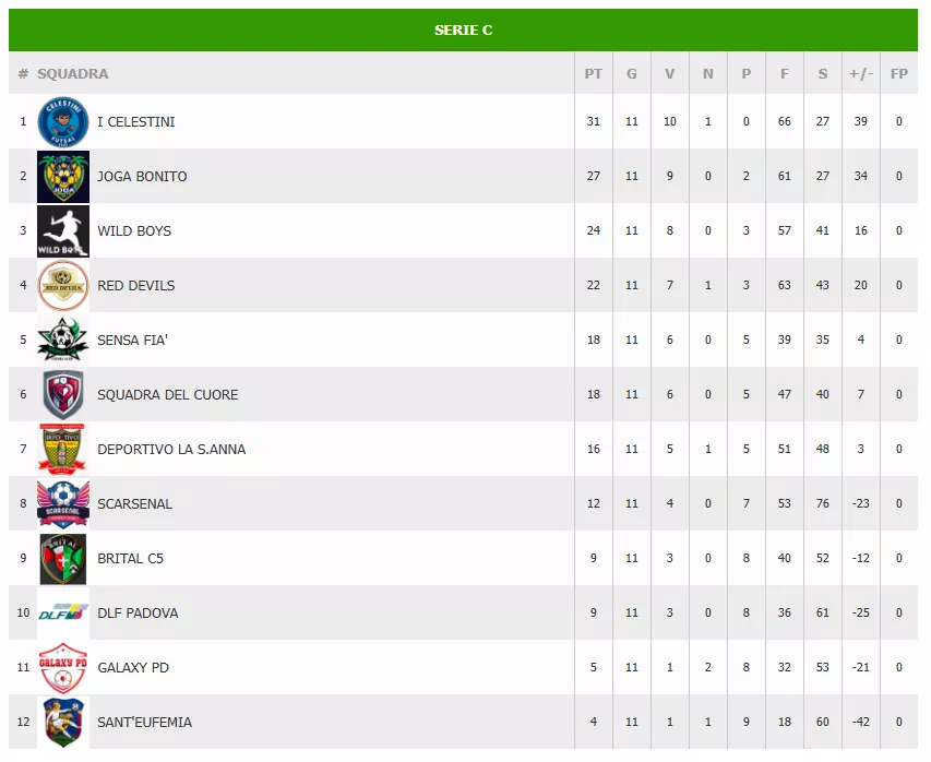CLASSIFICA Serie C SUPERLEGA AICS VERTIGO