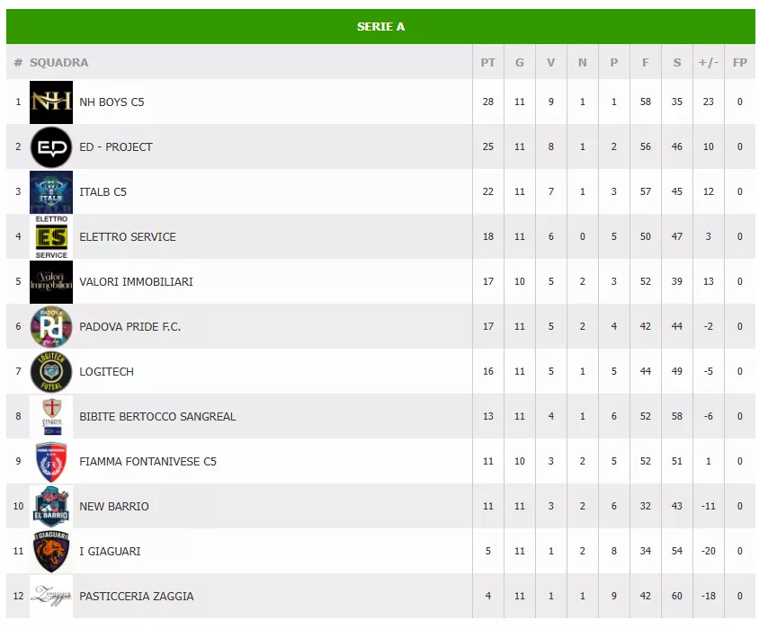 Il freddo di metà dicembre non ha spento il fuoco sacro del calcio a 5 padovano. L'undicesima giornata della SERIE A - SUPERLEGA AICS VERTIGO ci regala una classifica che scotta, tra conferme autoritarie, cadute fragorose e una classe "Over" che continua a dare lezioni di tecnica e cuore sui campi del Vertigo e di Cadoneghe.