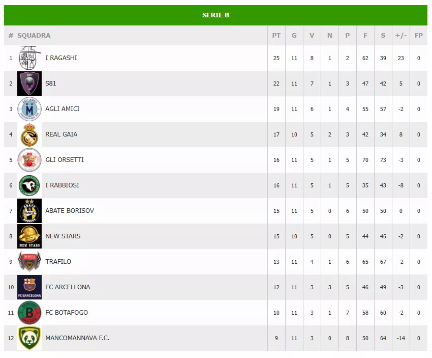 CLASSIFICA Serie B SUPERLEGA AICS VERTIGO