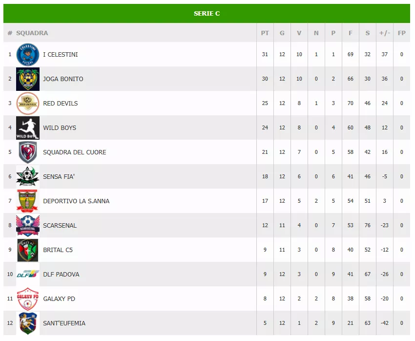I CELESTINI mantengono il primato con 31 punti, ma il JOGA BONITO ora è a una sola incollatura con 30 punti. Più staccati i RED DEVILS a quota 25.