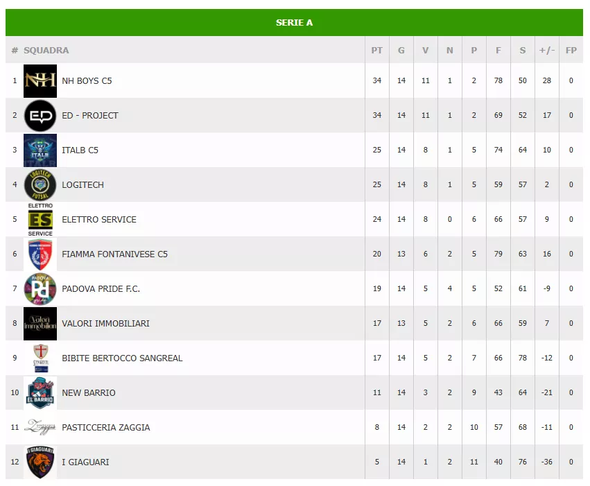 PADOVA PRIDE F.C. (19 punti) - ELETTRO SERVICE (24 punti) = 1 a 8