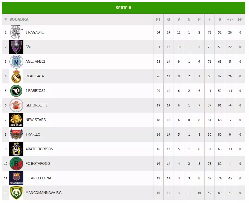 CLASSIFICA Serie B SUPERLEGA AICS VERTIGO