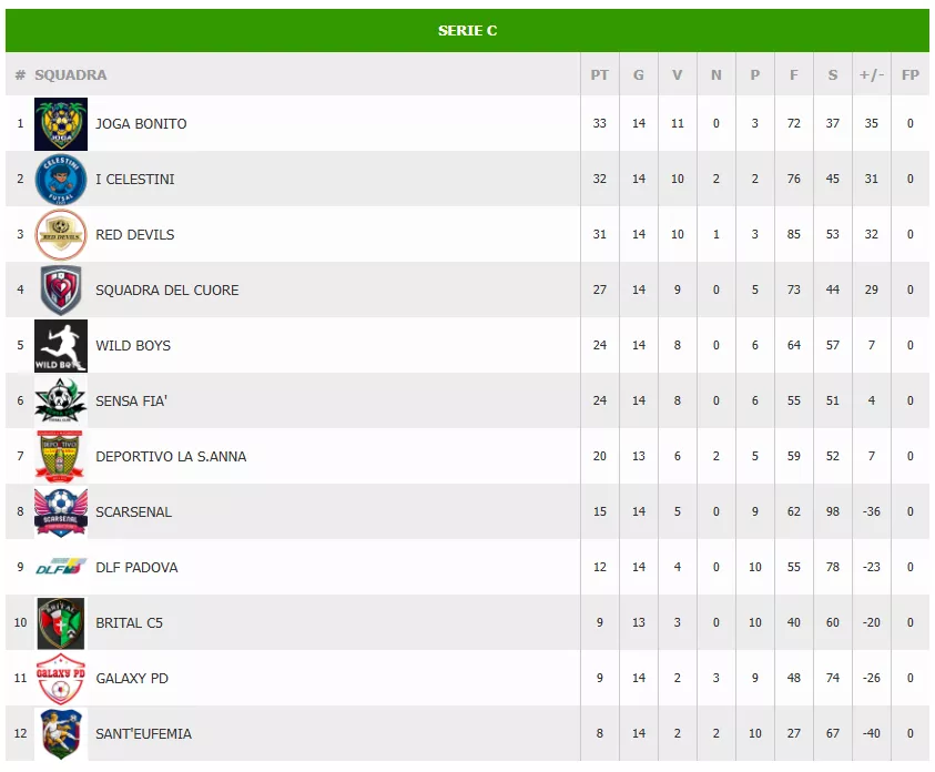 CLASSIFICA Serie C SUPERLEGA AICS VERTIGO