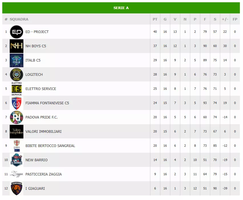 CRISI NERA: In coda, I GIAGUARI continuano a soffrire. Con 12 sconfitte e una differenza reti di -39, il futuro appare nebuloso, mentre la PASTICCERIA ZAGGIA insegue a quota 11 KO, cercando disperatamente una scintilla per ripartire.