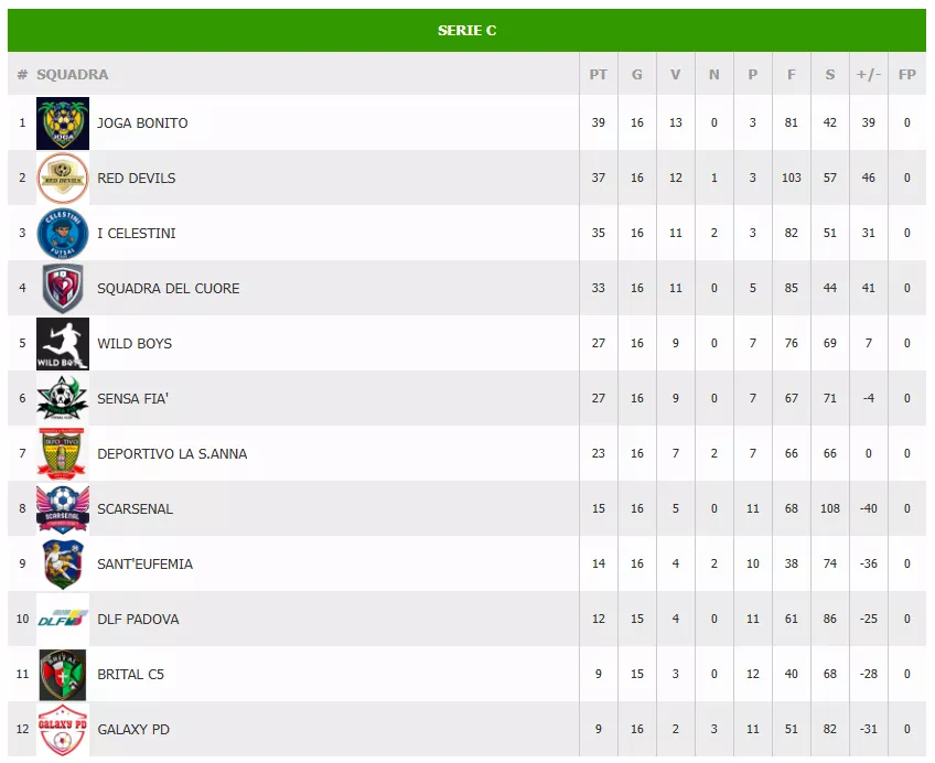 CLASSIFICA Serie C SUPERLEGA AICS VERTIGO
