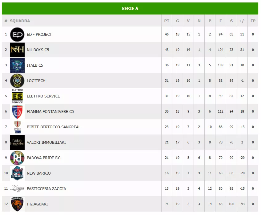 CLASSIFICA Serie A SUPERLEGA AICS VERTIGO