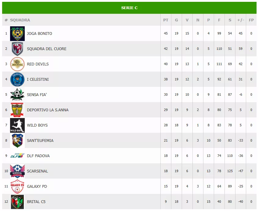 CLASSIFICA Serie C SUPERLEGA AICS VERTIGO