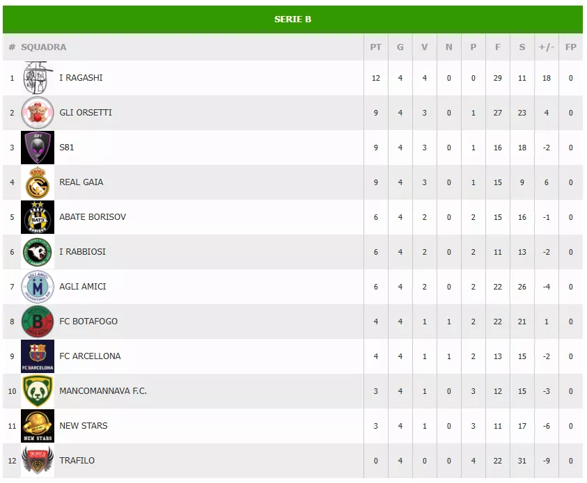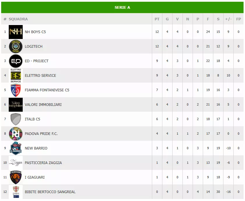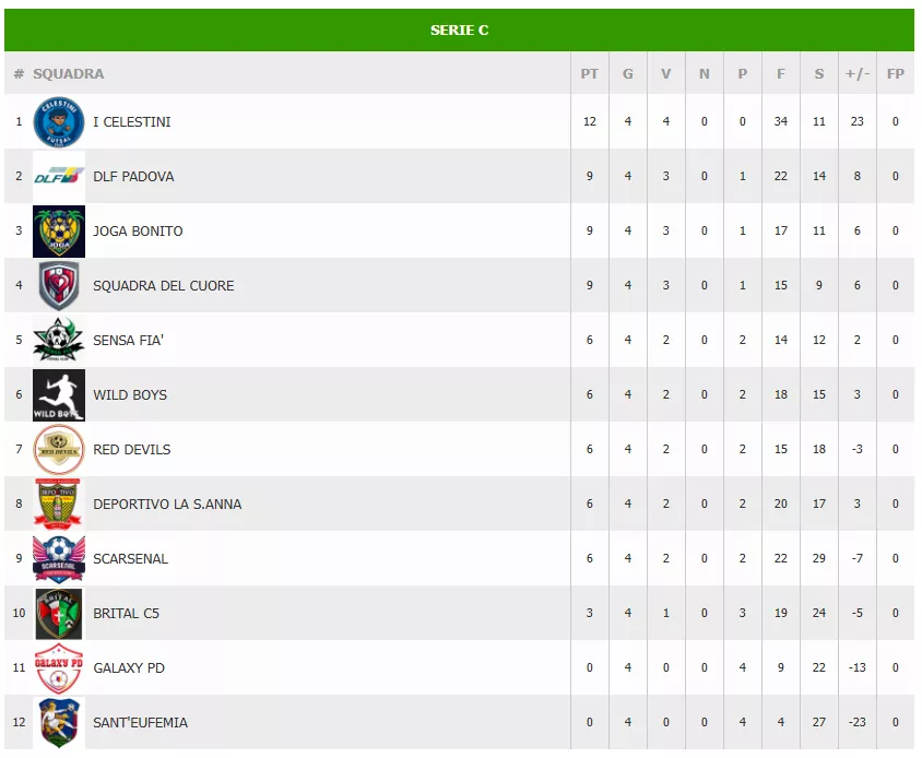 I CELESTINI sembrano inarrestabili, ma DLF PADOVA, JOGA BONITO e SQUADRA DEL CUORE sono in agguato a soli 3 punti di distanza, pronte a sfruttare ogni passo falso. Il folto gruppo a 6 punti promette un'intensa lotta per le posizioni di vertice. La 5ª giornata si prospetta imperdibile per capire se I CELESTINI riusciranno a mantenere il ritmo o se gli inseguitori riusciranno ad accorciare.