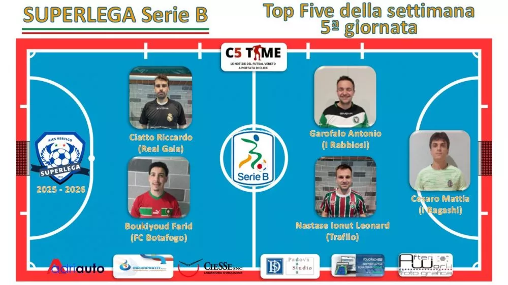 Lunedì 3 al Vertigo Sport Center di Padova, l'ITALB C5 si riprende con forza, superando 6 a 4 la mai doma PASTICCERIA ZAGGIA grazie a un Top Five della settimana Achouri Nizar in stato di grazia, autore di quattro reti. Completano il sestetto vincente i gol di Hoxhaj Florind e De Podolinsky Rilke. La Pasticceria Zaggia ha lottato con dignità, trovando una doppietta con Polato Kevin e i gol di Carpanese Leonardo e Schiavon Alex, ma non è bastato a smuovere la sua posizione.