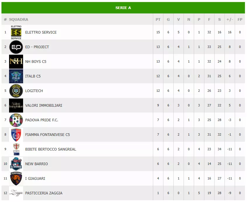 Colpo d'occhio: Una Serie A sempre più avvincente. La ELETTRO SERVICE allunga il passo, ma la ED - PROJECT e la ITALB C5 non mollano. La classifica si fa sempre più corta e avvincente, con tre squadre (BIBITE BERTOCCO SANGREAL, NEW BARRIO e VALORI IMMOBILIARI) che compiono un salto in avanti in un colpo solo!