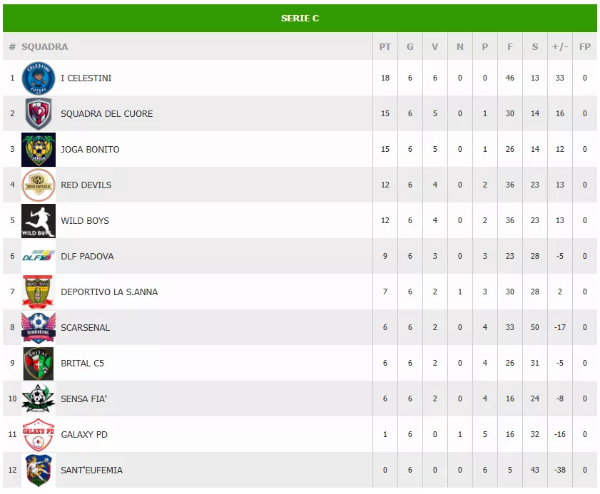 Colpo d'occhio: Una Serie C sempre più favolosa. La zona alta della classifica si è ulteriormente compattata, con le prime cinque che hanno tutte vinto. I CELESTINI sono la prima incontrastata, ma SQUADRA DEL CUORE e JOGA BONITO tallonano. RED DEVILS e WILD BOYS si confermano al quarto e quinto posto, pronte a dare battaglia.