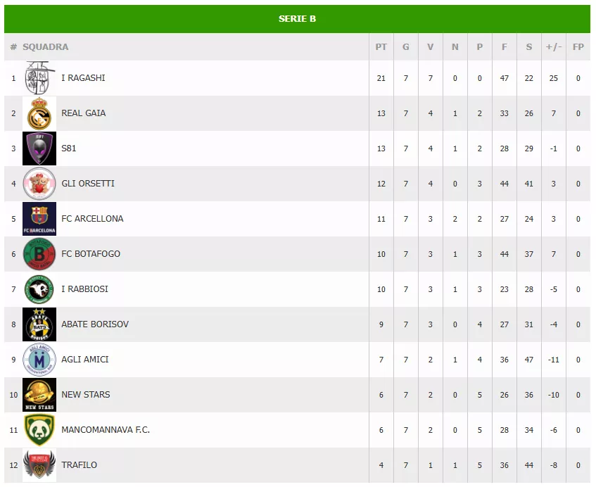 CLASSIFICA Serie B SUPERLEGA AICS VERTIGO
